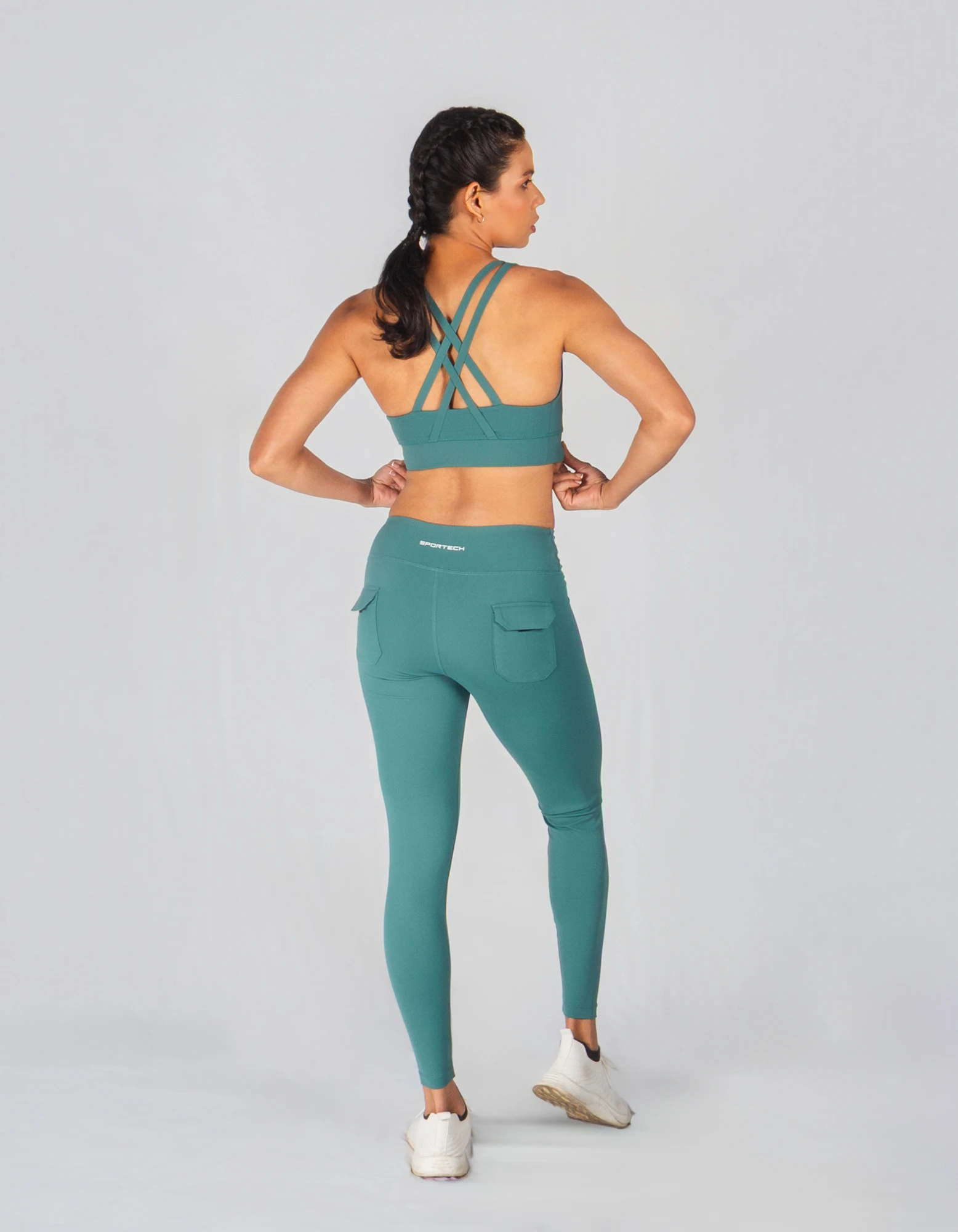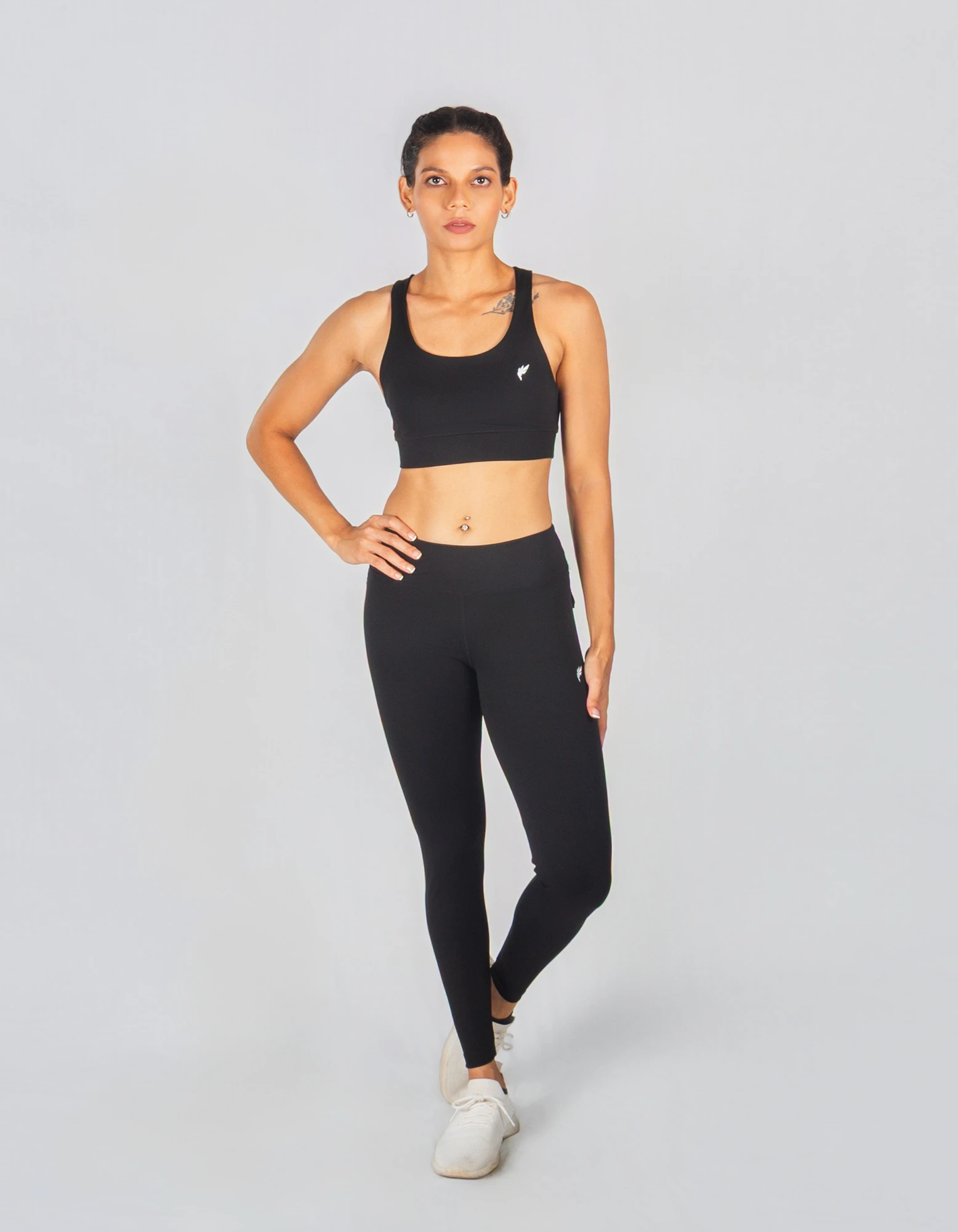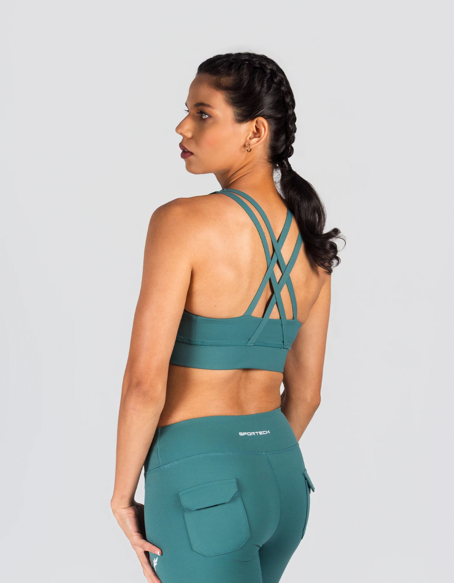 The StrataX Bra features dynamic, layered back straps that create a compelling visual, offering semi-support and a bold, rebellious look for every bend and stretch.